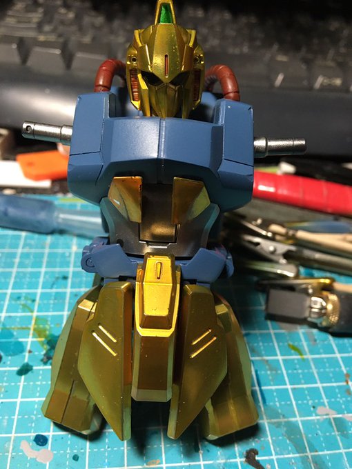 0 2 百式 進捗 ちょっとポップな色味になっちゃったかなぁ… シェイド入れてトーン落とすかなぁ… それともメッキ上塗りもポップな色味でバランス取るか…。 #ガンプラ 20/04/24 17:39