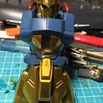 百式 進捗 MG MSN-00100 百式。 素組みで棚行きだったもの。長年の棚暮らしでクリアが色褪せてたのをマッキー極太イエローで塗ってみたら何とか金色っぽく。しかしムラだらけでどうにも気に入らないのでリメイクがてらリペイントする事に。 クリア剥がし、成型色パーツの面出しなどなど。 #ガンプラ