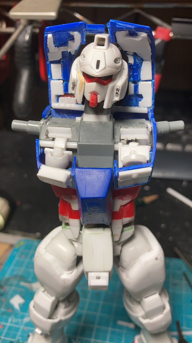 MG 1/100 RX-78-2GUNDAM 進捗 心眼センサーオープンプロセス。 とりあえず胸郭にセンサーと可動部を納めた。 コアファイターもちゃんと分離できるし、肩の付け根はスイング追加してる。 #ガンプラ #Gの影忍