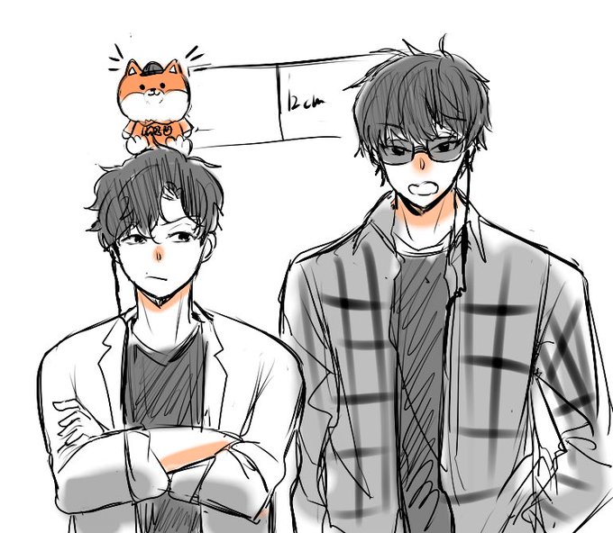 落書き404〜 中ポリちゃんお座り状態だとだいたい15センチちょいだったので… smちゃんとibkの身長差ってお座りポリくらいってこと〜〜〜!? と考えついた頭の悪い落書きです