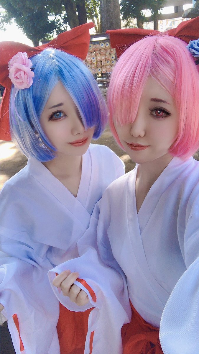 58 256 【コスプレ】 レムラム巫女併せ♥ 23/03/20 19:56