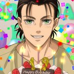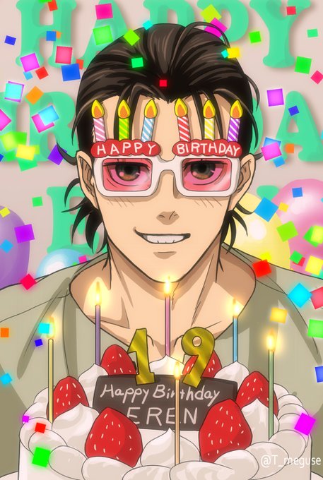 304 1219 友人たちに祝われて、照れつつもドヤ顔で写真に納まる転生後のエレン。転生後の幸せを妄想して祝う!!! アニメ寄りで描いてみた。 #エレン生誕祭2023 #エレン・イェーガー生誕祭2023 23/03/30 02:30