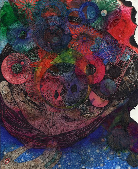 作品No. a33 ドローイング 作品サイズ:W223×H273mm (紙にドローイングペン マーカーに水彩) #drawing #art #grunge #drawingart #analogart #artwork #alternative #alternativeart #dark #dark_art #spirograph #芸術 #ドローイング