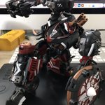 フリューさんのTENKITOLそに子、デコマス監修しました!ライダースーツのカラバリにいい感じの台座が付いてヴィネット調になっております🏍💨 ※写真は彩色原型のため一部マスキングテープで補強しています。#TENITOL #すーぱーそに子 #supersonico