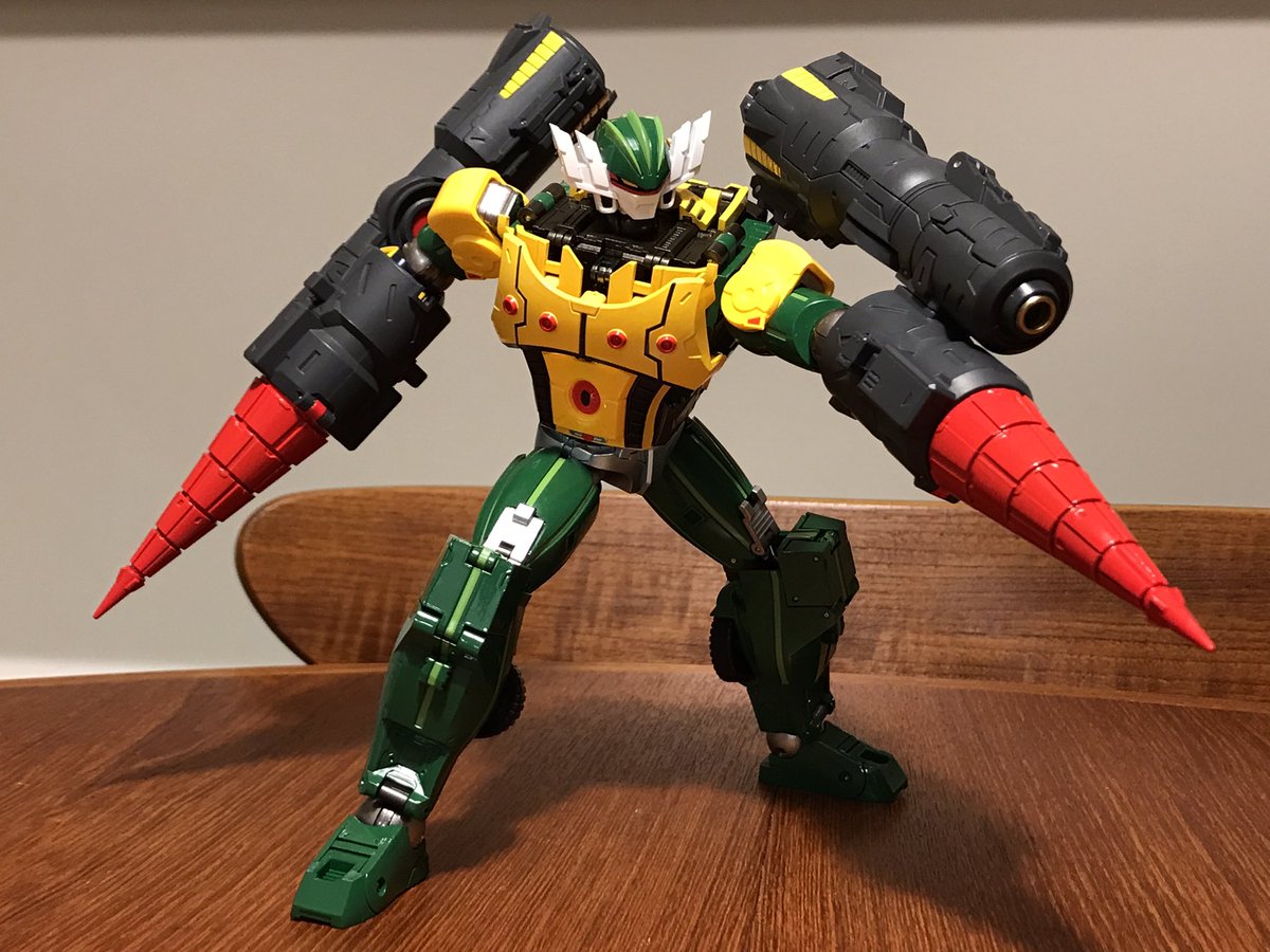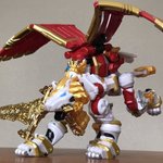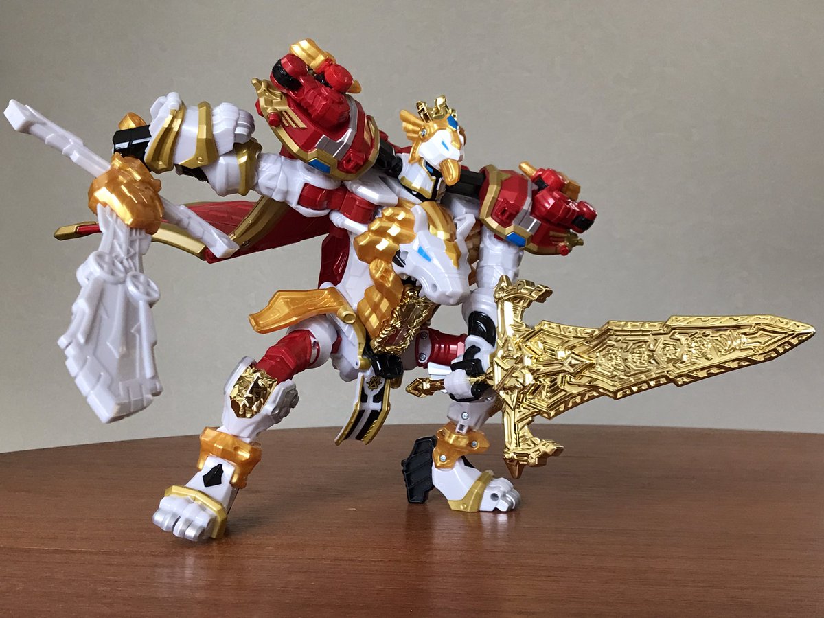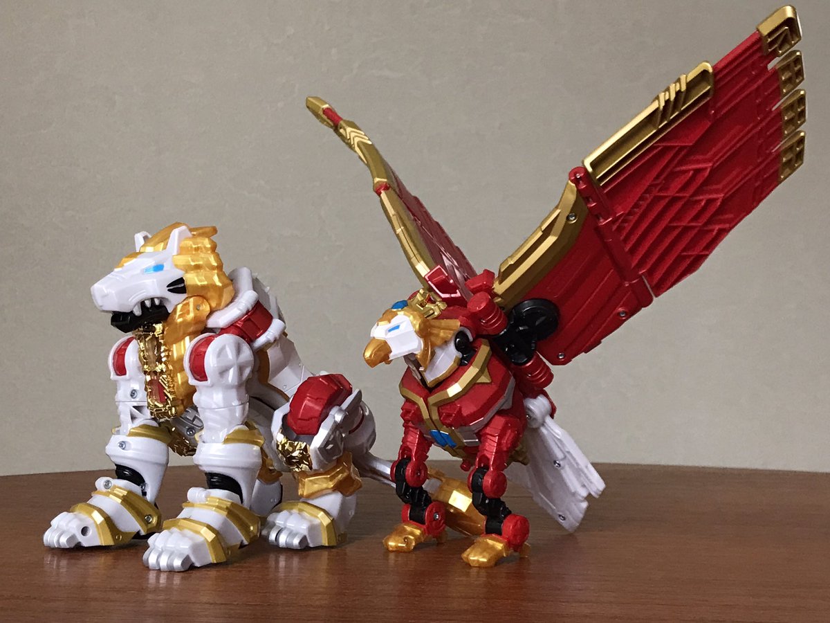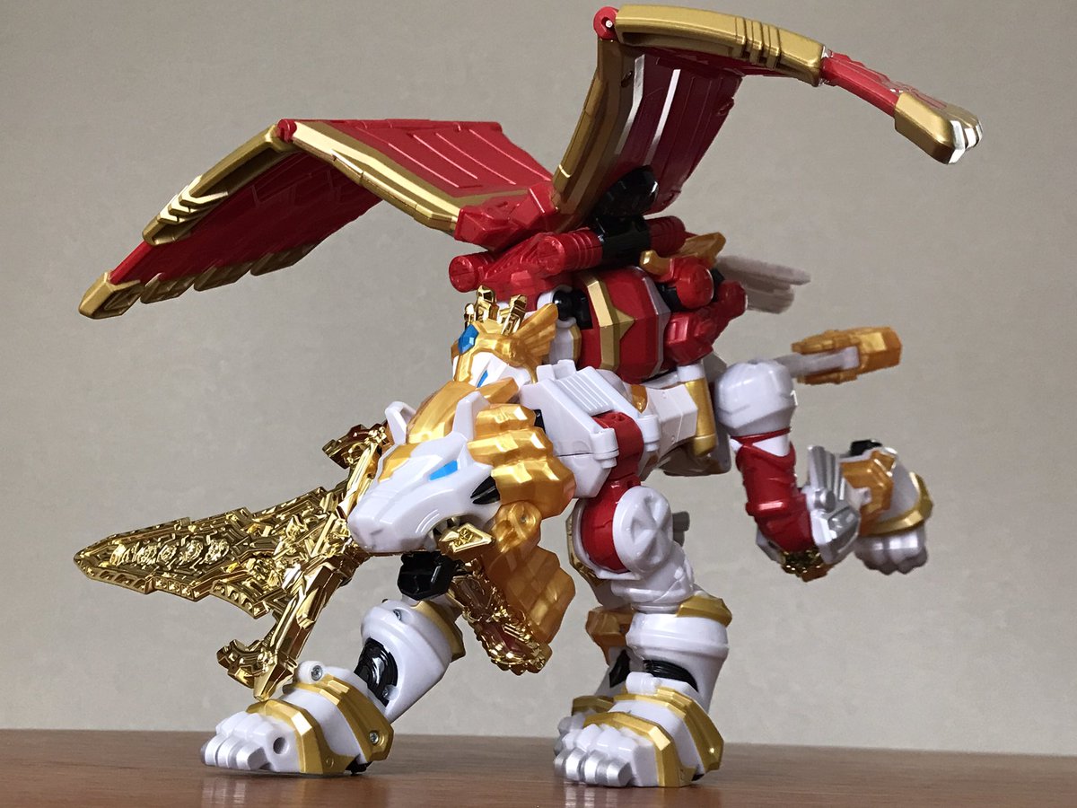 スーパー10のウイングライアン、どこかノスタルジーを感じる金ピカなデザインが大好き。両形態とも結構動くし金ピカソードはライオンの口に咥えさせれば余剰にならない。素敵です。