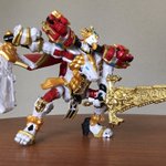 31 86 スーパー10のウイングライアン、どこかノスタルジーを感じる金ピカなデザインが大好き。両形態とも結構動くし金ピカソードはライオンの口に咥えさせれば余剰にならない。素敵です。 22/11/17 20:22