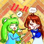 🦋冒険だって?あたしゃいい人(魔王)からチョコもらってね。コタツで食べながら応援しとるよ 🐸うむ、良かったのう。わらわはお友達(勇者)と冒険してくるのじゃ。留守番よろしくの …… #t7VdgfiXfQNM4gL 鮫肌さんちのドルチェルド様とソルティナさんお借りしました! #ttイラスト #よその子
