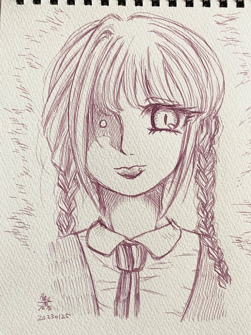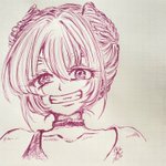#GW創作クラスタフォロー祭 #絵柄が好みって人にフォローされたい #絵描きさんと繋がりたい #創作 #OC #うちの子 #アナログイラスト #アナログ絵 #ペン画 #万年筆 可愛い正面顔を描いています!!! うちの子!!!可愛いね!!!!!