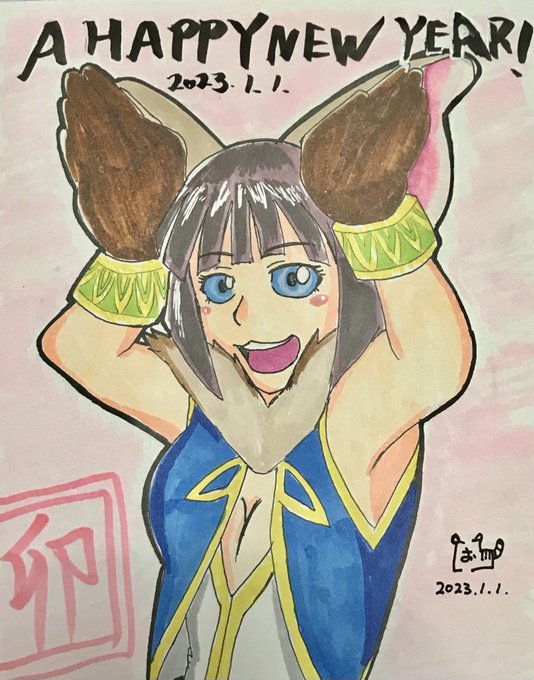 7 20 描き初めお年賀イラストはジャネスちゃん‼️ 改めて今年もよろしくお願いします…😌✨ 23/01/01 04:19