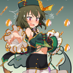 これは以前描いた 徳川まつりSHSカードイラスト覚醒前だとまつりと昴は同じ衣装着てるんだから覚醒後も同じ衣装着てなきゃおかしいやろがいという事で昴用を仕立ててもらって仮縫い段階で試着してもらったけど仮縫いが緩すぎてほつれちゃったやつ。
