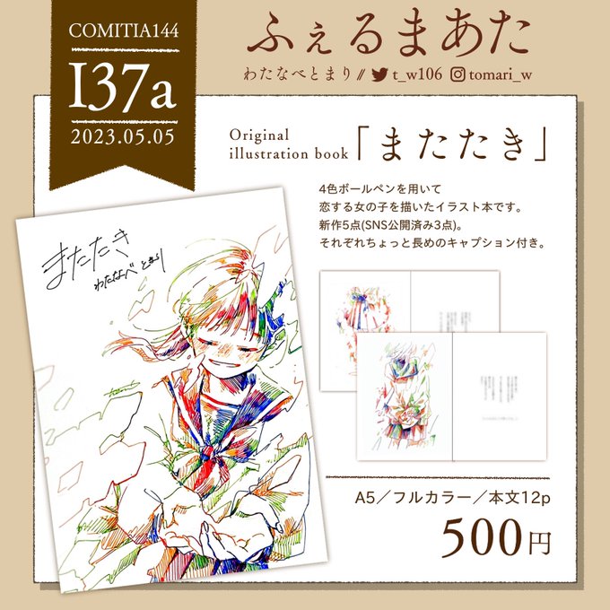 5/5 #COMITIA144 おしながきです!!!!ドン!!!! 当日は【I37a ふぇるまあた】にてお待ちしております〜よろしくお願いします!