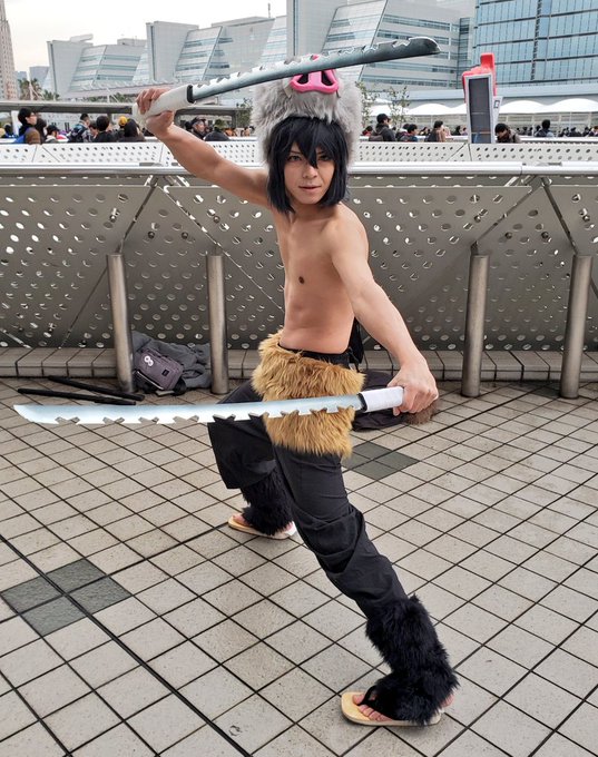 1 7 季節を疑わせるwイケメン伊之助 連日この格好で通し切る根性もカッコいいぞ〜っ! #C97 #C97コスプレ 19/12/30 16:05
