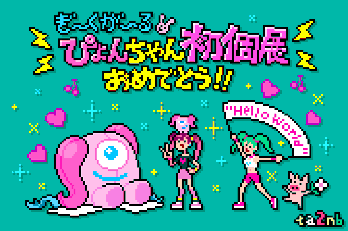 ギークガールぴょんちゃん(@pyon_877) / 🍒Hello World!🍎 🍎初個展開催🍒 \ お祝い&応援ドット絵を描いたよ⚡ 関東近郊のかたはこの週末遊びに行ってみてください。 なんと、ぴょんちゃんとゲーム🎮ができるらしいよ😳! うらやましい! twitter.com/pyon_877/statu…