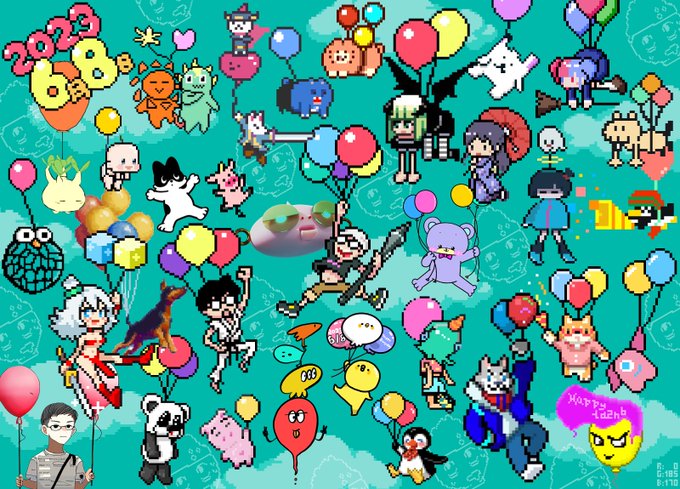 自分の誕生日に、祝い絵を要求するという蛮行にお付き合い頂きありがとうございましたっ!!😚💦 ドット絵、イラスト、3Dモデル、AI絵まで!なんと総勢32名! to the moon🚀…とはいかなくても、ふわ~っと飛びつけていたいものです🎈🎈🎈🎈 #ta2nb生誕祭2023
