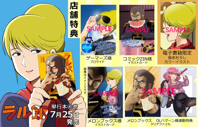 53 159 【7月25日発売 ラル飯④巻店舗特典ご案内】 また明日告知しますがご参考いただければ幸いです。 ④巻はハモンさんの描き下ろしマンガがありますぜ! そして今回から電子書籍限定で特典カラーイラストもつけてみました。 画像はごく一部なので全体像はぜひ確かめてみてね♪ よろしくおねがいします! 23/07/24 21:15