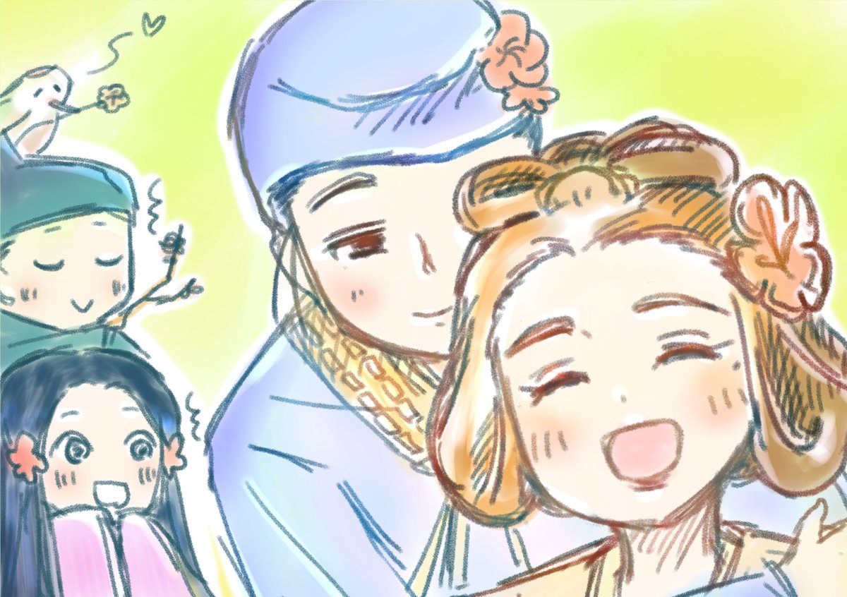 明日早起きしなきゃなので30分ドロ。 #歴創版日本史ワンドロワンライ お題:母 で参加します! 菅原道真母の歌 「久方の月の桂も折るばかり家の風を吹かせてしがな」 をイメージして描きました。母目線カメラ。 拙宅道真はさんは肯定も否定もせずに頷いてるイメージです。 おやすみなさい!