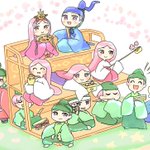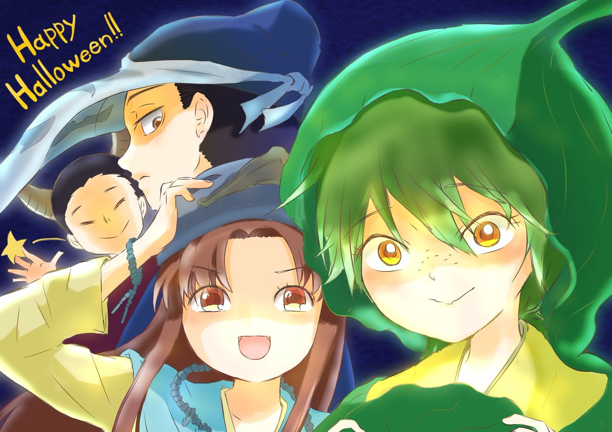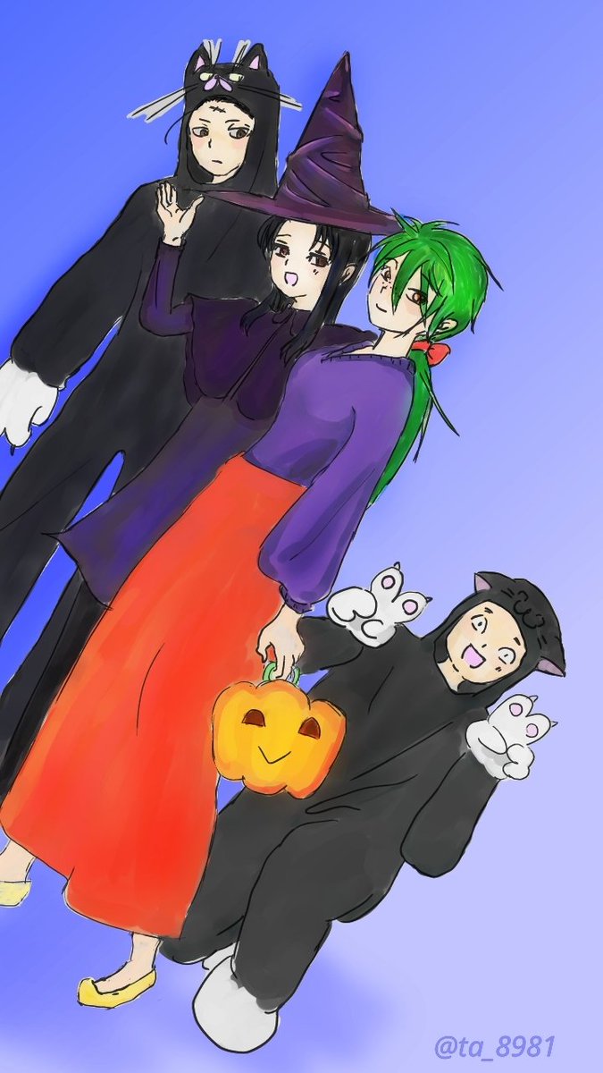 #ハロウィンイラスト 間に合いました~☺ (応天の門の二次創作です) 白梅ちゃんが被ってるのは蓮の葉っぱです。 鳥獣戯画派生画でカエルくんがフードみたいにしてて可愛かったので参考にしてみました🐸😊