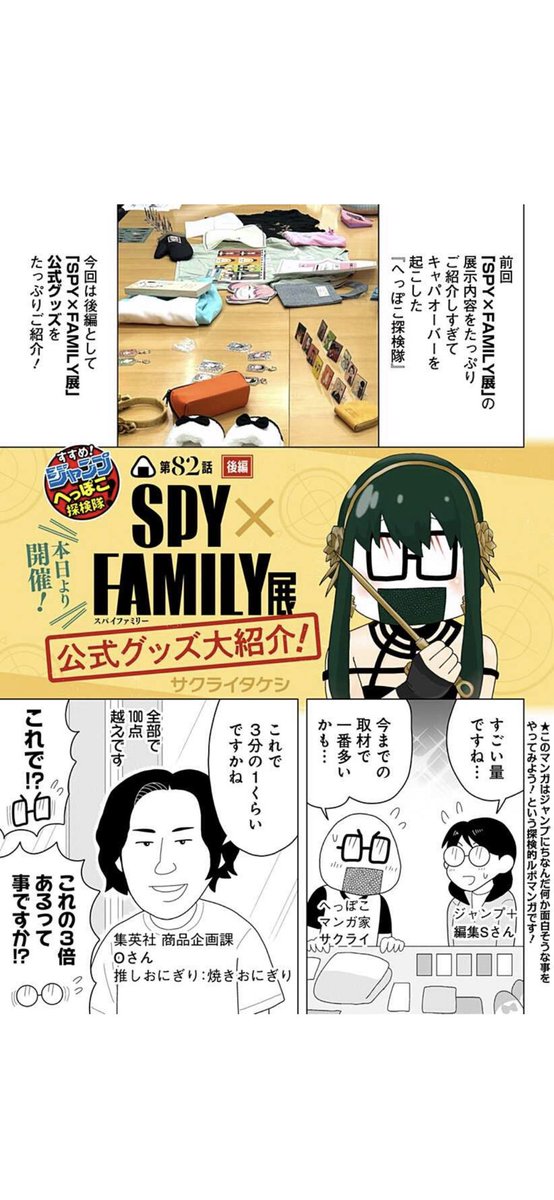 へっぽこ探検隊!最新話更新! 本日から松屋銀座さんで開催される 「SPY×FAMILY展」を大調査! 今回は公式グッズをご紹介! 定番のグッズから予想外のグッズまで その凄まじい物量と熱量に アナタは耐え切れるか…⁉︎ shonenjumpplus.com/red/content/ec…