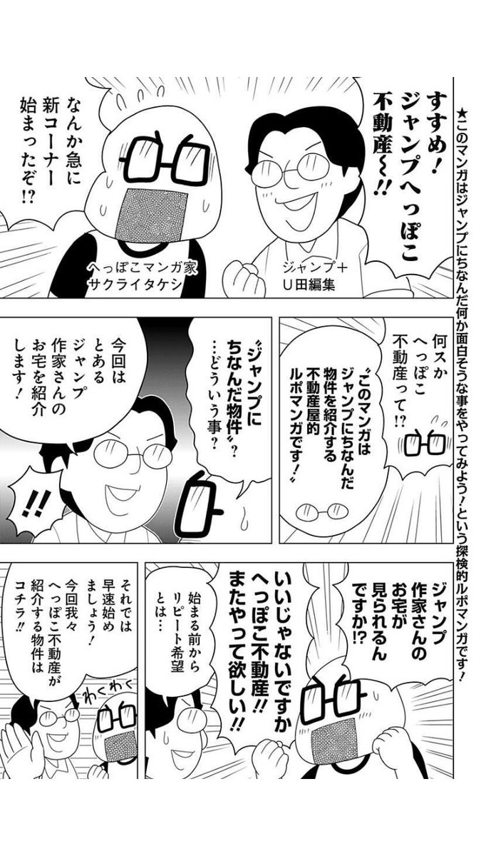 へっぽこ探検隊!最新話更新! うすた京介先生降臨‼︎ 現在売り出し中の うすた京介先生のお宅を ご本人に案内して頂きました! なんて贅沢な内見! 家の概念が変わる ものすごい豪邸でした! 写真も満載なのでマンガ付き 住宅カタログとしてお楽しみ下さい! shonenjumpplus.com/red/content/SH…