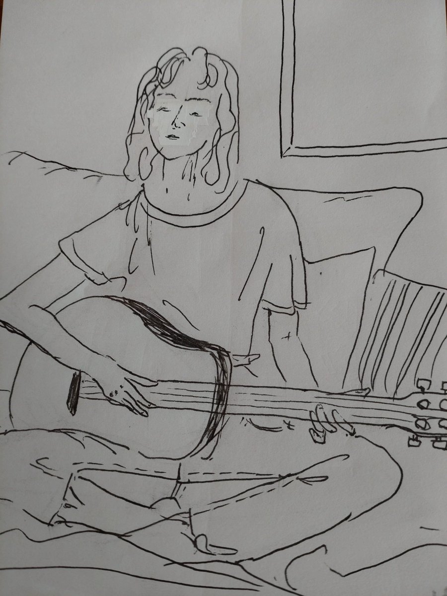 5日目。 #イラスト初心者 #アナログ絵 #絵描きさんと繫がりたい #落書き #ペン画 #アンドプレミアム 2020 6 #ギター女子