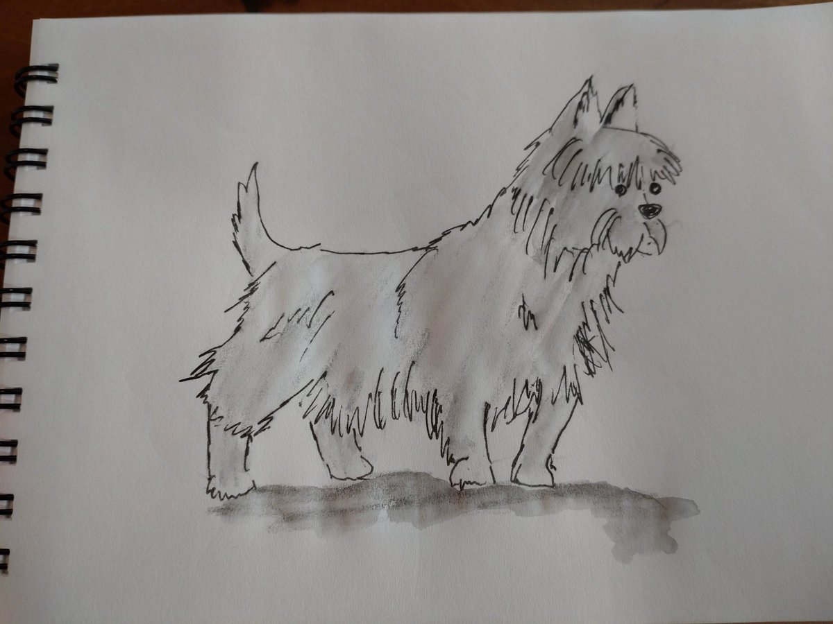 9日目。昨日の分。 #イラスト #落書き #イラスト初心者 #絵描きさんとつながりたい #ペン画 #アナログ画 #水彩色鉛筆 #ワンコ #一日一絵