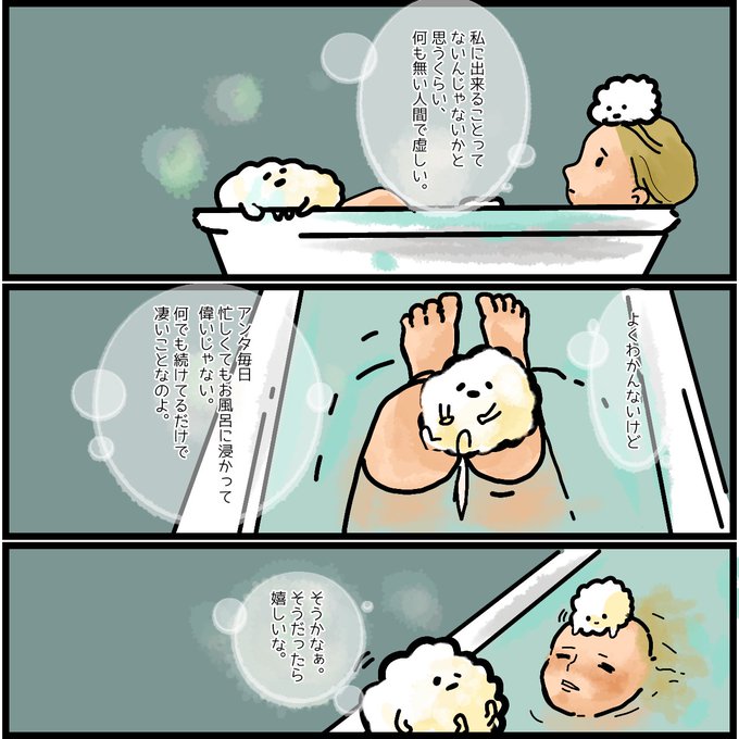 0 1 #漫画が読めるハッシュタグ #3コマ漫画 虚しい気持ちを泡で流すアワアワさん。 #ゆるかわ #ゆるい絵 22/02/09 12:57