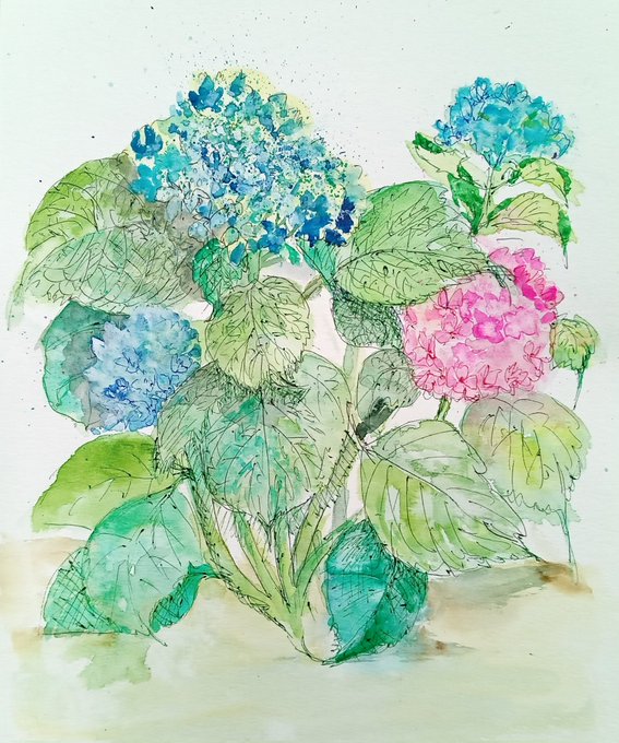 #つらら庵お散歩スケッチ #水彩画 #スケッチ 近くの公園で紫陽花を描いてきました。