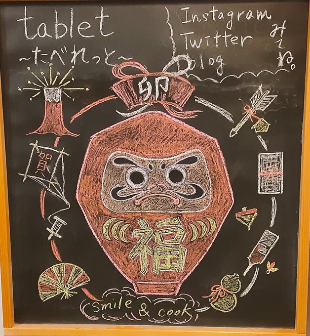 4 19 ウェルカムボードNo.18! 現在では、願い事を叶える助けをしてくれる縁起物として知られているだるまを選んでみました😊 赤以外にも、黒、金、黄、白など、いろいろな色があるようなので、願い事に合った色を選んでみるのもいいですね👍 #縁起物 #黒板アート #イラスト #秦野 #だるま #お正月 22/12/27 19:50