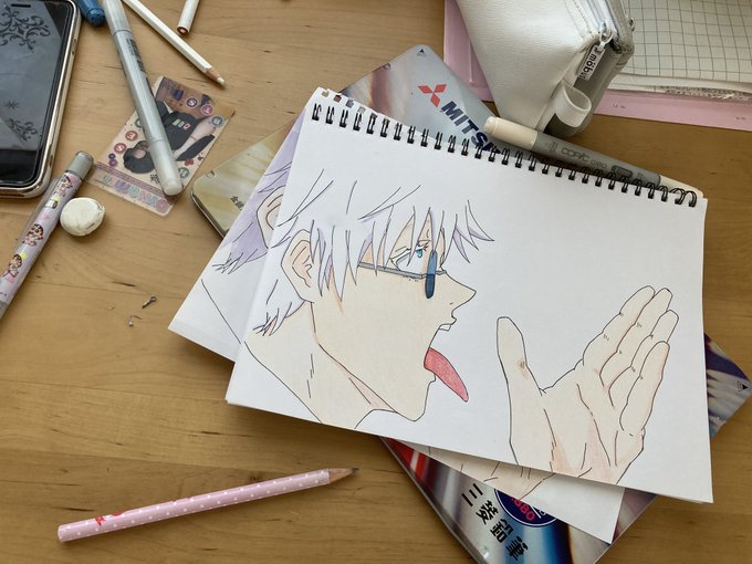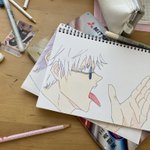 0 5 娘の絵、久々に見ました あぁ、もう完全に負けました! 左→娘 右→私 #イラスト #呪術廻戦 #五条悟 #コピック #アナログ #よっちゃんいか 23/07/17 17:22