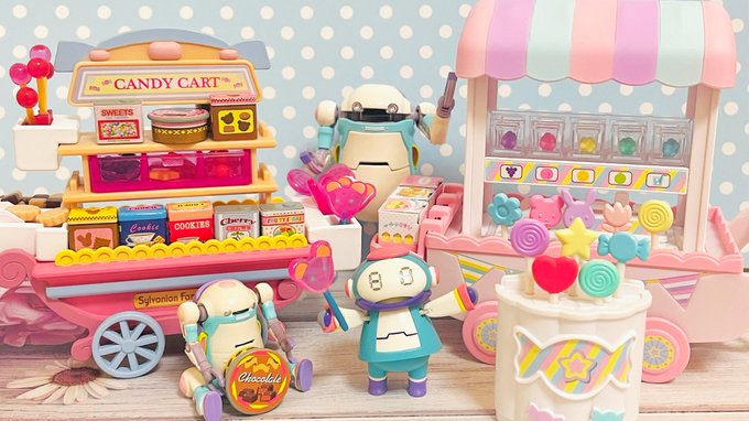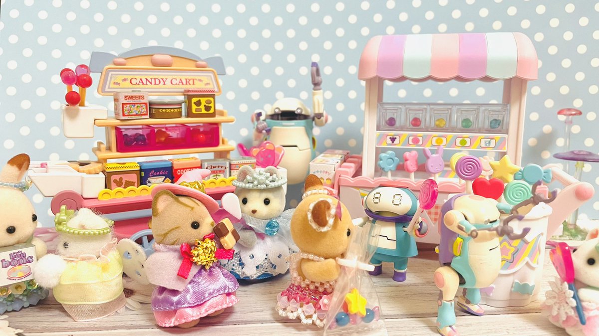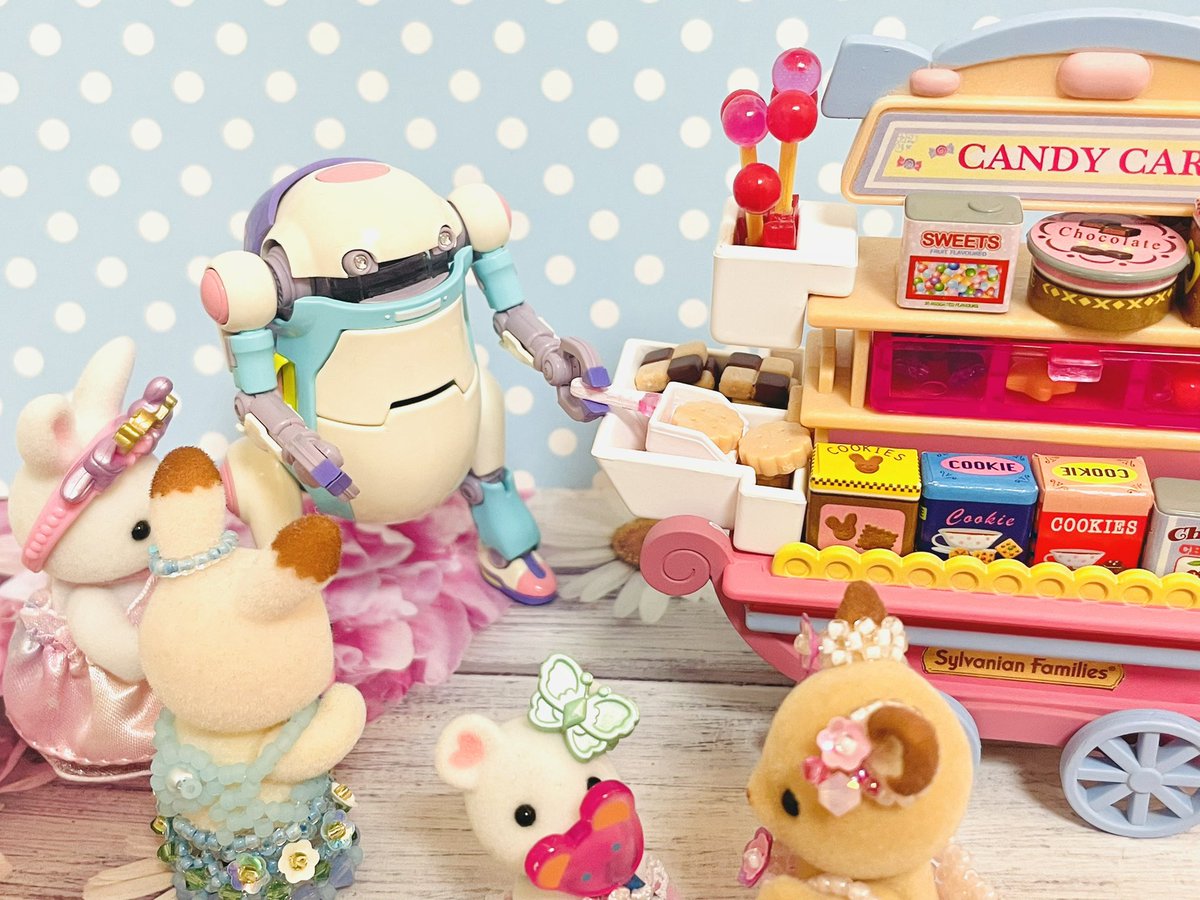 80’sウィーゴのカラフルキャンディーショップがオープンしました🍬🍭✨ ずっとこれがしたかったのよ!!! レトロポップな #メカトロウィーゴ 達のあま〜いスイーツに、ゆめかわプリンセス達もうっとり♡満員御礼〜 #メカトロメイト #タイニーウィーゴ #シルバニアファミリー #シルバニア赤ちゃん