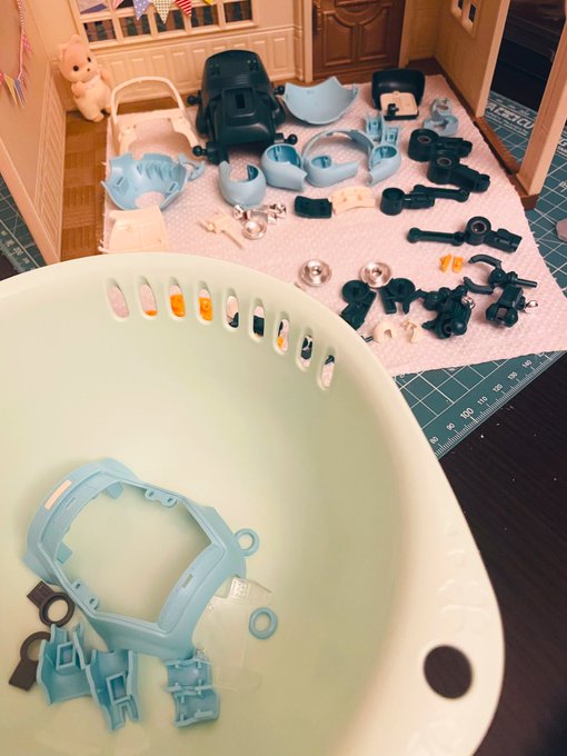 20ウィーゴ、パチ組み。 はめ込むところが35よりちょいと複雑かも?でも個々のパーツが大きいので立体パズル感覚でサクッと完成! ギミック多彩で楽しい★シルバニアちゃんからは遊具扱いされそうw ほな洗浄塗装やりまっせ! #メカトロウィーゴ #シルバニア赤ちゃん