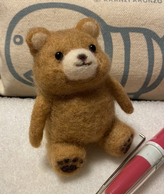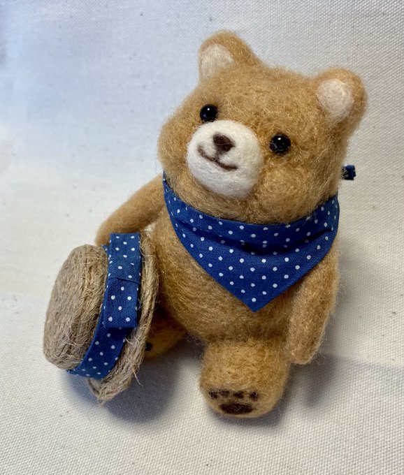 麦わら帽子の作り方を教えてもらったので張り切って作ってみた。 被らせたかったのに、重さと大きさが合わなかった…残念😔 とりあえず紐をつけておいたので、なにかに活用できるといいなあ。 #羊毛フェルト #ペットボトルキャップ