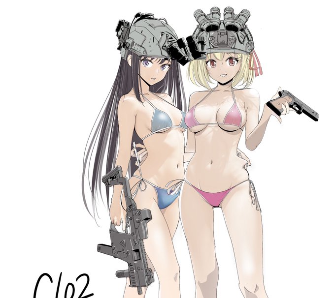意外と好評だった描き下ろし。 武装JKのビキニ版良いよね…(˙꒳˙ ) #リコリコ twitter.com/i/web/status/1…