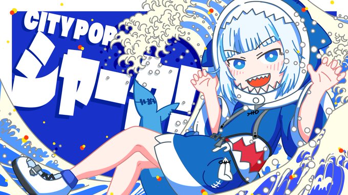 シティポップシャークのイラストです この子のデザインって描きたくなるよね #gawrt #gawrgura