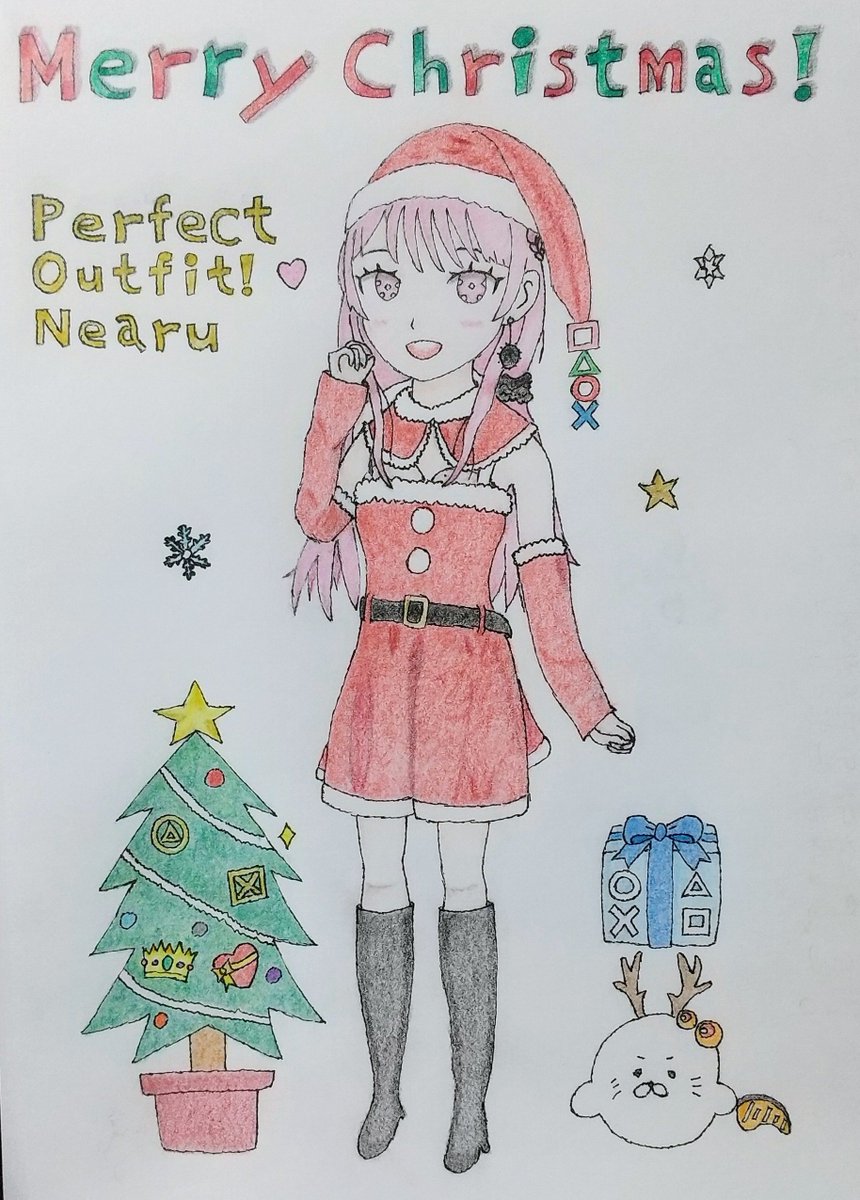 1 6 @maisakanearu 元気と癒しを届けるサンタねあるん(png形式に直したからちょい重い) Perfect(完璧な) Outfit! (衣装) Nearu(ねある) PONが見えるのは内緒だよ。 (透過は難しくてできなかった…) #ねあるあーと 22/12/24 09:01