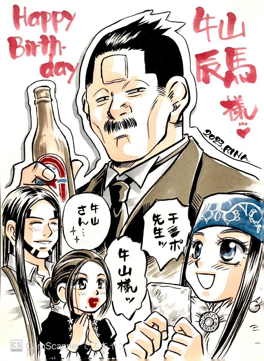 ホントはマンガ描きたかったけど。その上間に合ってないけど。寒い時期生まれのキラウシ、あったかくして美味しいものたくさん食べてね!おめでとうございます✨ #キラウシ誕生祭2023 #金カムアナログイラスト部