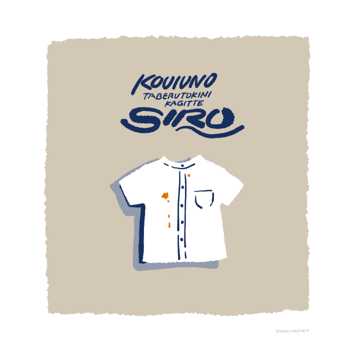 0 3 ミートスパゲティ・カレーうどん・ビーフシチュー・煮込みハンバーグ・みそ煮込みうどんなどなど こういうの食べる時に限って何故か白。 #シャツ #イラスト 22/08/26 17:35