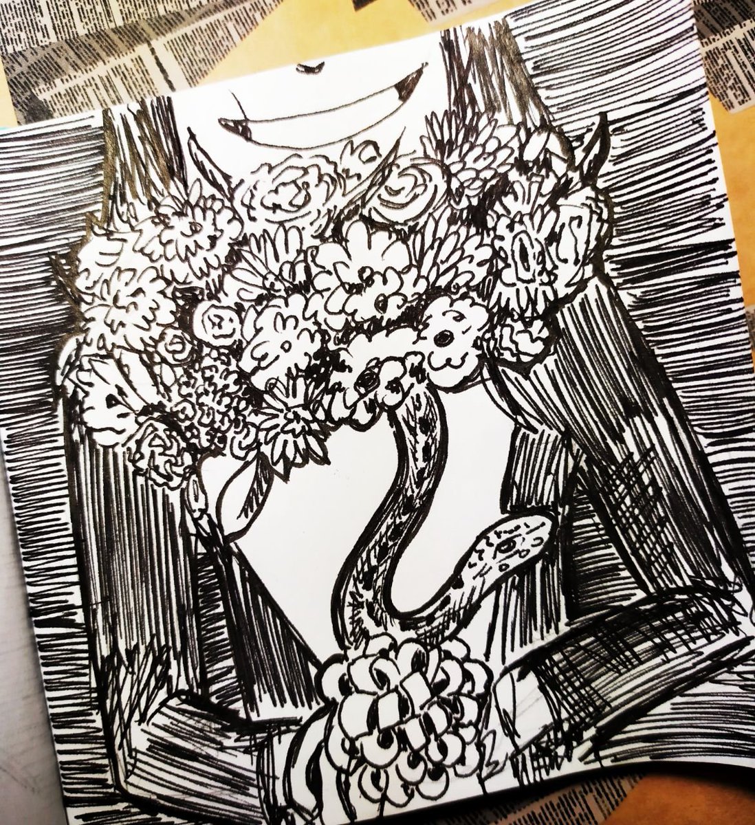#sketch #traditionalart #inktober2022 #inktober2022day6 #bouquet #art #inktober #snake
