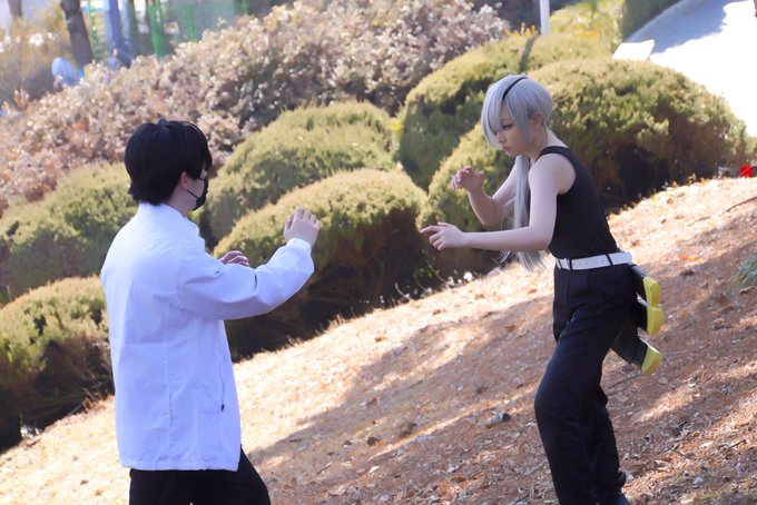 「 ...정말로 이 대화는 마키마가 듣고 있지 않은 거겠지 」 「 괜찮아요 문어한테 확인을 받았어요 주변에 생쥐나 새는 없어요 마키마는 하등생물의 귀를 빌린다... 였죠? 」 2023.02.25 체인소 맨 - 요시다 & 키시베 📷 : @Visual_Uin #체인소맨 #チェンソーマン #요시다 #키시베 #코스프레