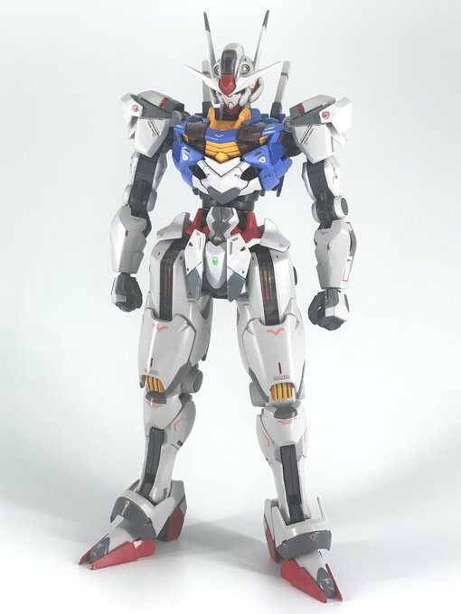 #水星の魔女 #エアリアル HGエアリアルようやく完成です!! 腕 脚 腰の延長と足首の幅詰めでけっこうスリムな印象になったと思います! 足首にロール軸を仕込んで、つま先を外側に開けるのもポイントです! #ガンプラの画像を貼るとRTされると聞いて