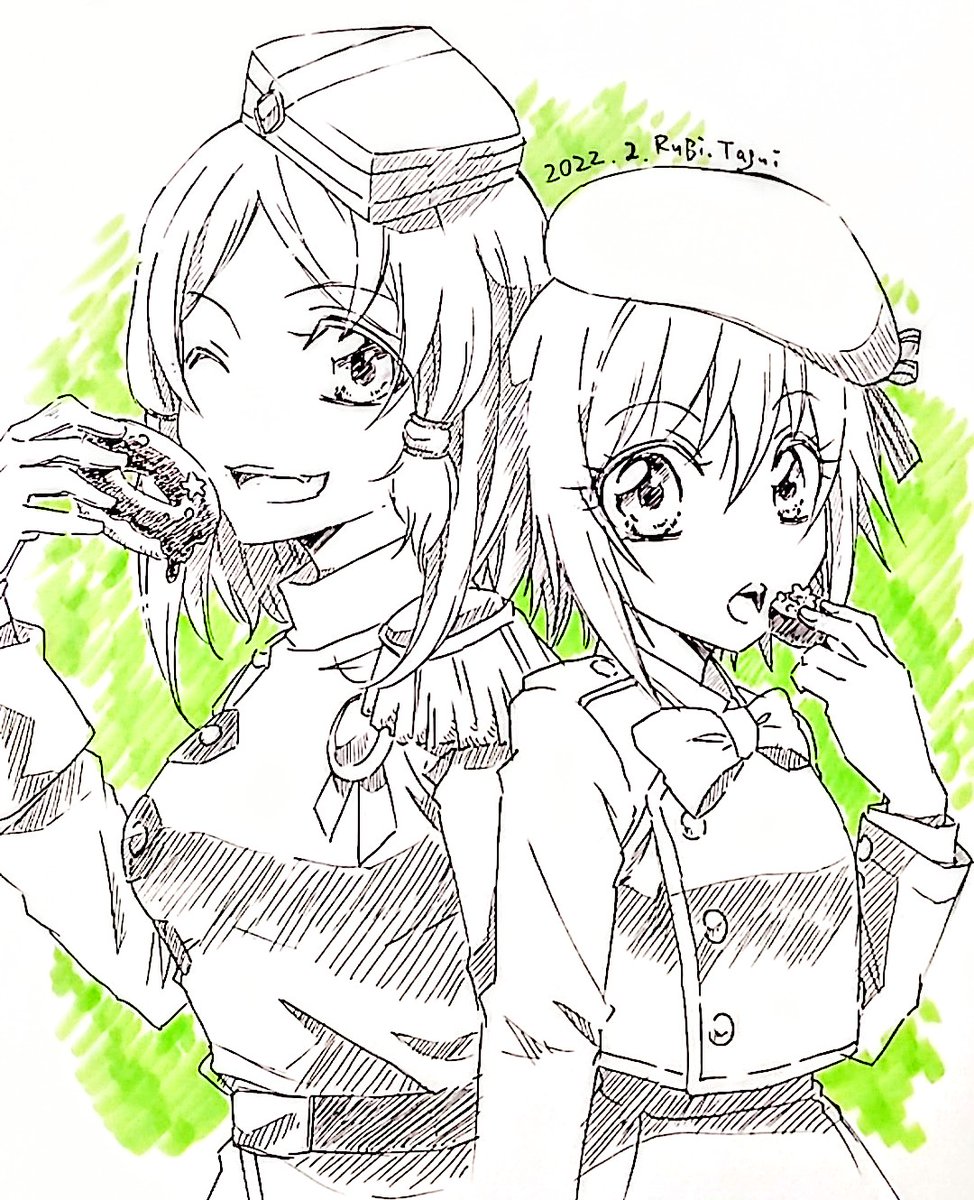 【バレンタイン】 推しのロゼちゃんとリタっち♥ 20分くらいオーバーしました…久しぶりにペン入れしたら手で擦ってすごい汚れてしまったり修正したり懐かしの感覚… #テイルズ版深夜の真剣お絵描き60分一本勝負
