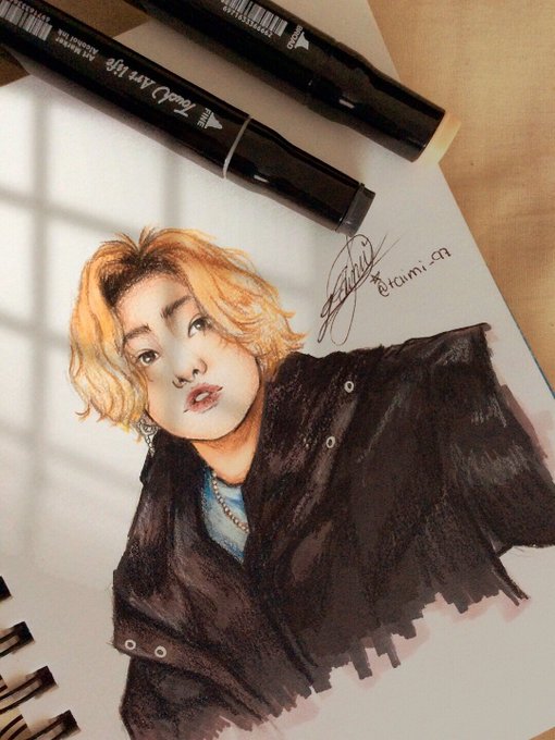 Jungkook with alcohol markers 👌🏻👌🏻🖤🖤🖤🌟🌟 @BTS_twt @bts_bighit #Jungkookfanart #jungkookselca #BTSARMY #btsfanart #방탄소년단