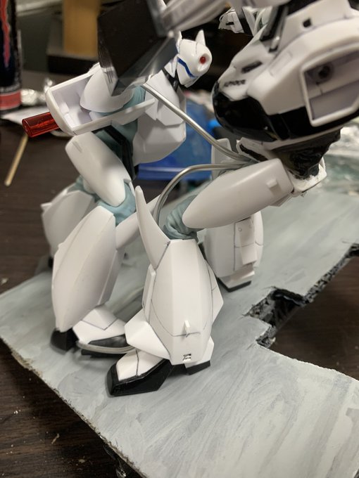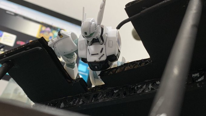 ジオラマ写真のみの場合の利点は見えないアングルは工数を抑えられる点があります。 って零式の胸パーツ付け忘れてるやん🤣 まあただの手抜きなんですけどね🤣 #パトレイバー模型部 twitter.com/taicho_do_it/s…
