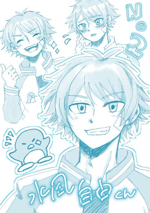 #水凪る自由帳 ここ数ヶ月でハマってしまいました初落書き記念✎𓂃 真っ直ぐで光なキザボーイ自由くん大好きだ~🐧✨ A3配信できるようになったみたいなので密かに待ってます😊