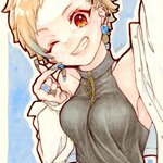 お礼で描いたミニ原画の自撮り恵磨