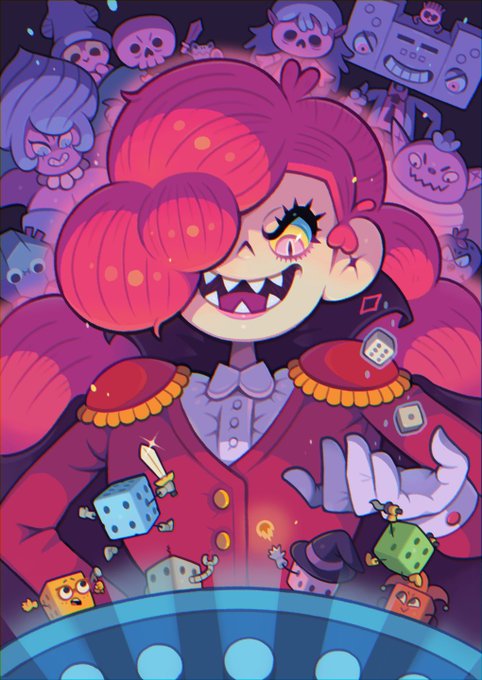 I drew a fan art for "Dicey Dungeons" for @btflglitch's Indie G Zine vol 3 ! 🎲✨ Lady Luck and monsters are fascinating and my favorite game! fangamer.com/products/indie…