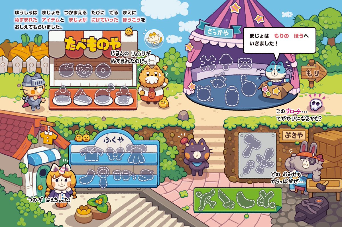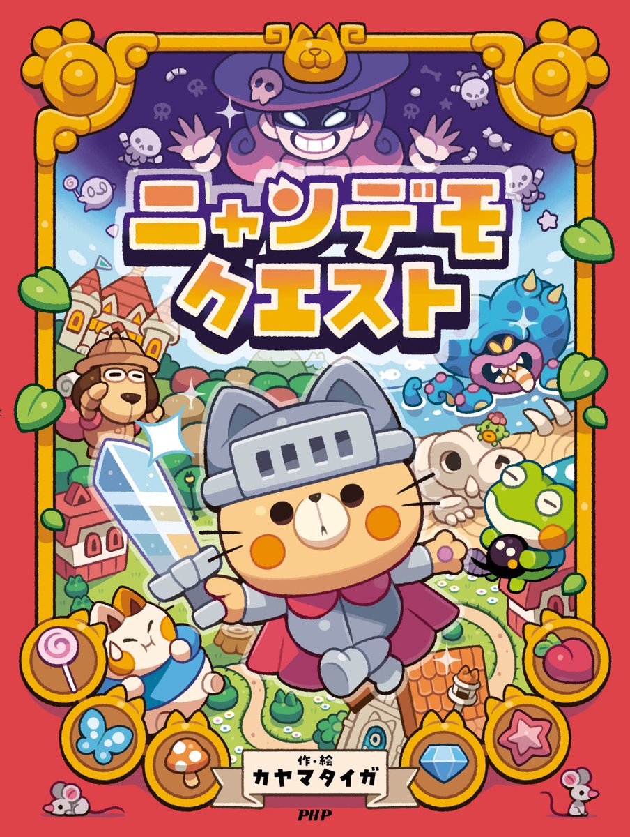 新しい絵本の告知です🐱⚔️ ネコの勇者が冒険する、RPGテイストな絵本が発売されます! 迷路や間違い探し、計算問題などなど……ゲームページ盛りだくさんな、子どもも大人も楽しめる絵本になっております! 『ニャンデモクエスト(PHP研究所)』11月22日頃発売予定です! amazon.co.jp/dp/4569880835