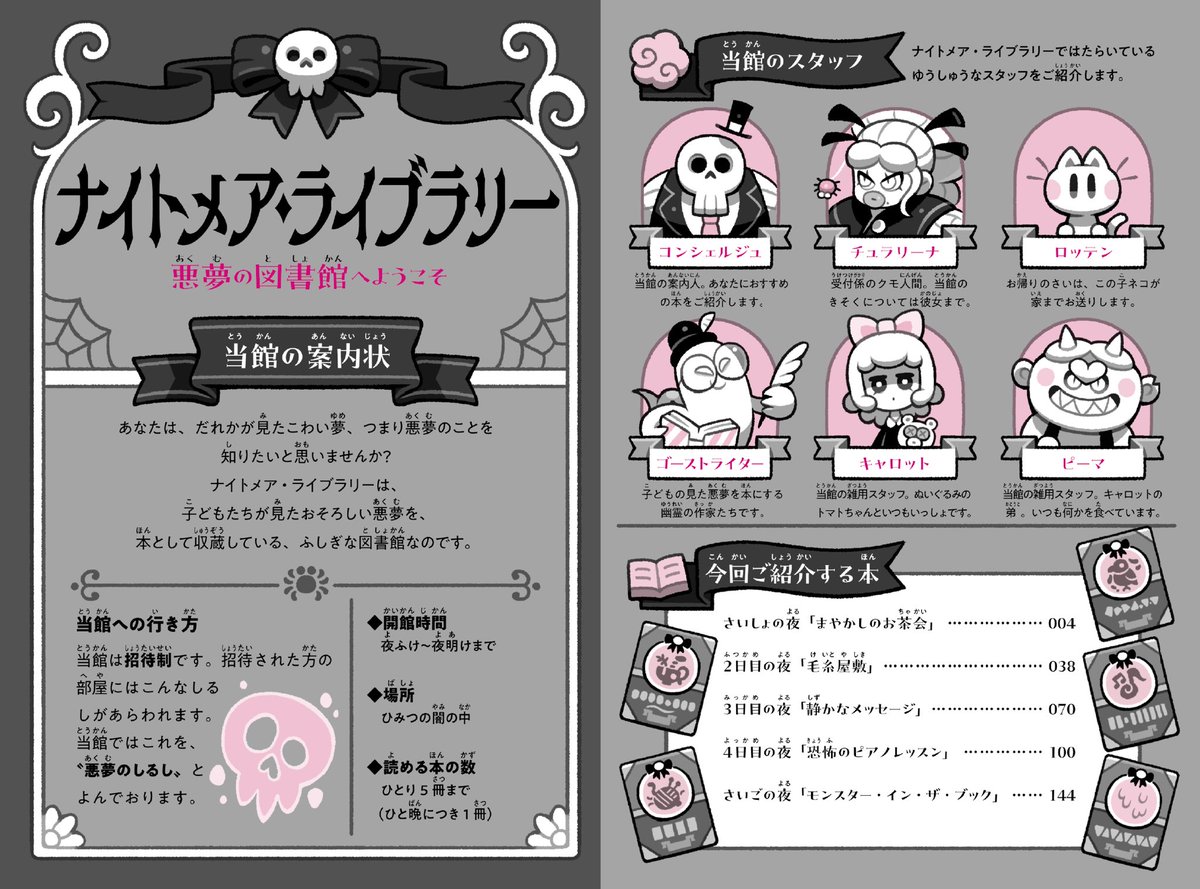 【💀告知👻】 ポプラ社さまより『ナイトメア・ライブラリー 悪夢の図書館へようこそ』という本が、2月15日頃発売されます! 子どもたちの見た悪夢が本として置かれている不思議な図書館で、”きみ=読者”が怖いお話を読んでいく…という短編集です! poplar.co.jp/book/search/re…
