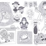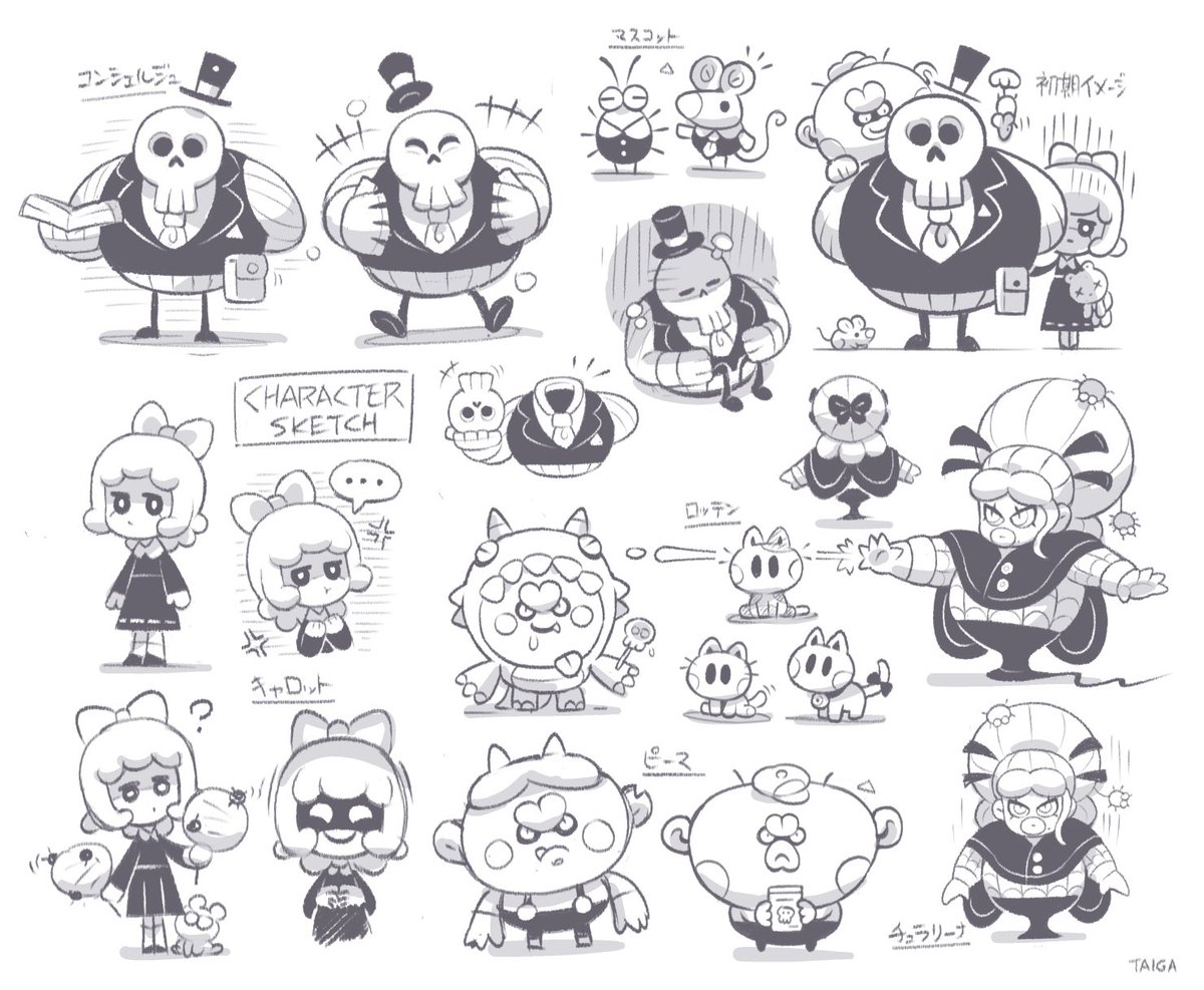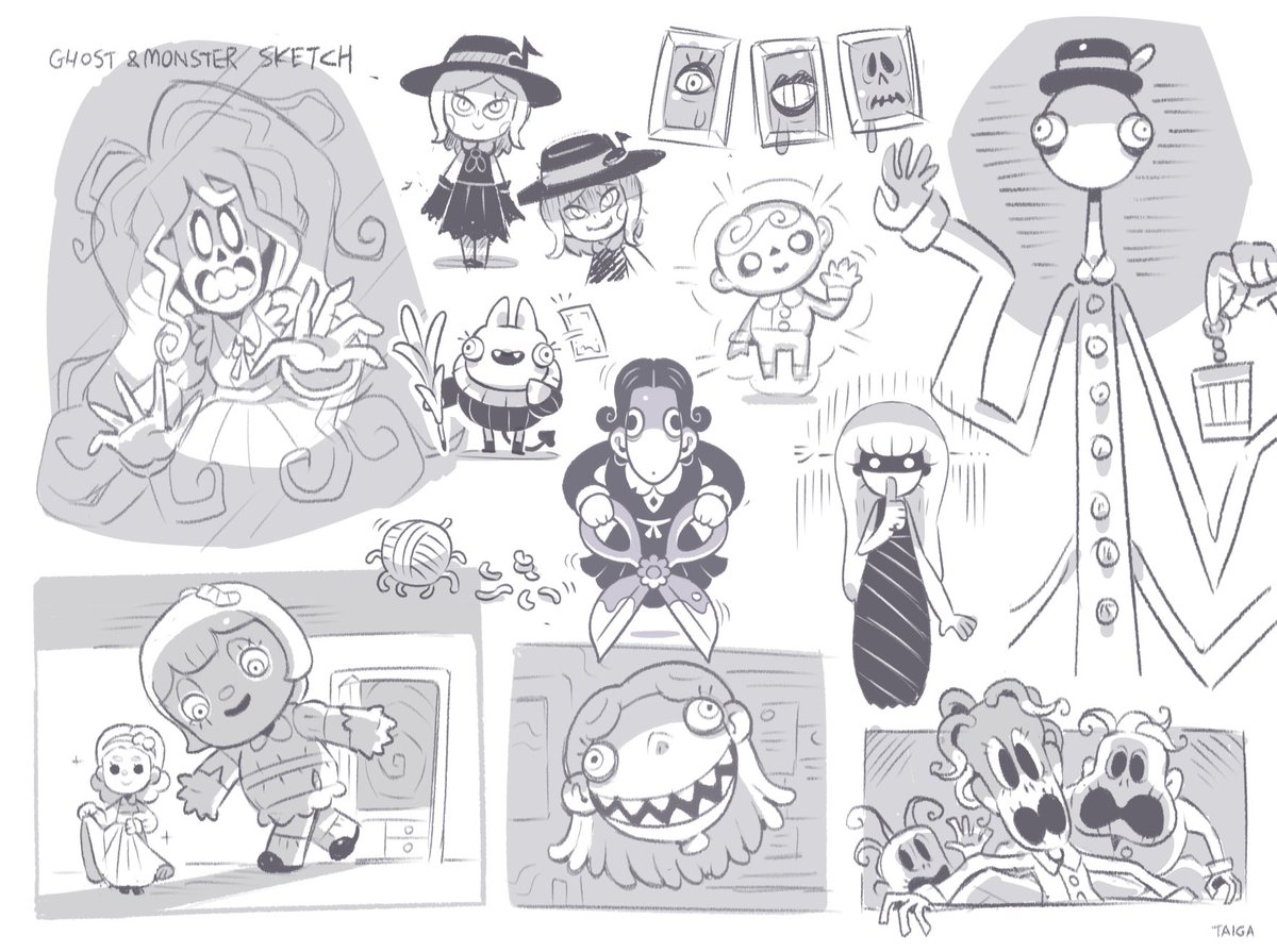 スケッチの一部です! (メインキャラ/新キャラ/悪夢の本に登場する子どもたち/悪夢の幽霊と怪物) ホラーだけど可愛さをちゃんと感じられるように、キャラデザは特にこだわっています🙇♂️ #ナイトメア・ライブラリー