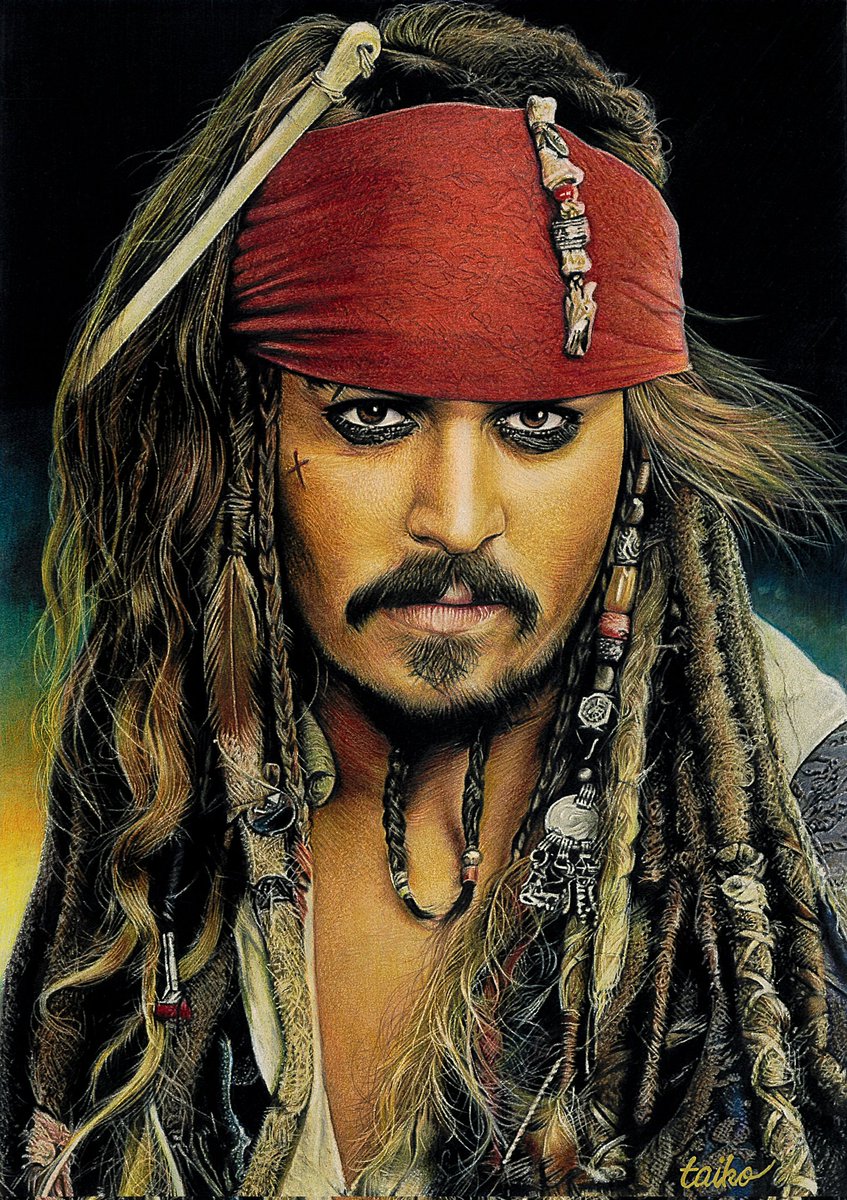 #パイレーツ・オブ・カリビアン の #ジャック・スパロウ 描きました😊✨ やっぱり、ジョニーデップのジャックじゃないとね😆 ジャックは永久に不滅です‼️🏴☠️⚔💣💰✨✨ #JohnnyDepp #PiratesoftheCaribbean #JackSparrow #JackSparrowdrawing #Coloredpencildrawing #色鉛筆画